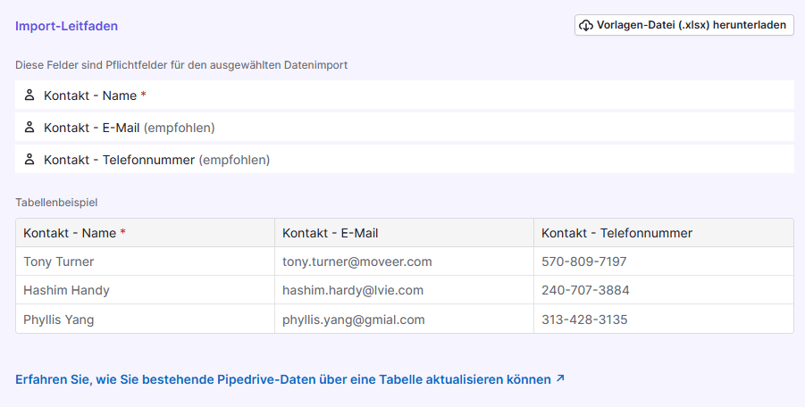 Moderne CRM-Lösungen bieten dir heute leistungsstarke Import- und Export-Funktionen, die viele der typischen Fehlerquellen von vornherein minimieren. Es ist möglich Daten per CSV- oder Excel-Datei zu übertragen und dabei automatische Abgleiche durchzuführen. So werden bestehende Kontakte erkannt und Dubletten vermieden, noch bevor sie entstehen. In der Feldzuordnung kannst Du festlegen, welche Felder aus deiner Importdatei in welche CRM-Felder übernommen werden sollen – das sichert die Konsistenz und reduziert manuelle Nacharbeit.