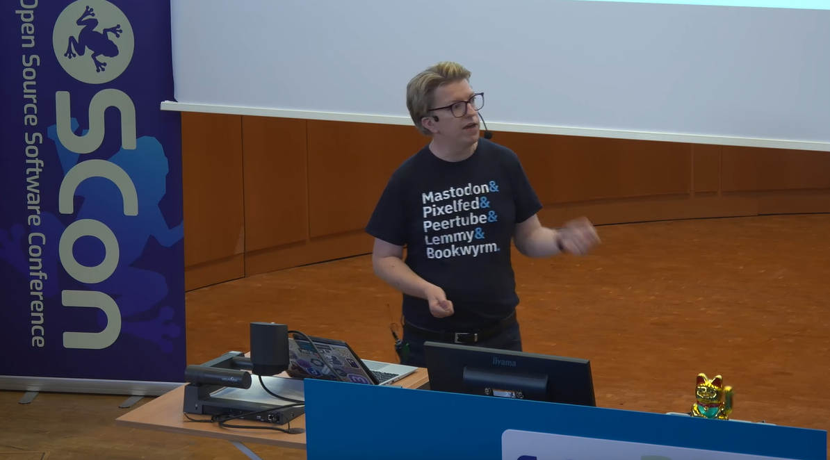 Auf der FrOSCon 2025 setzte sich Andy Piper, Head of Communication bei Mastodon und ehemaliger Mitarbeiter bei Twitter, in seinem Vortrag „Decentralising Freedom: Open Source for Sovereignty“ kritisch mit den Risiken zentralisierter digitaler Plattformen auseinander. Vor dem Hintergrund zunehmender Kontrolle weniger Tech-Konzerne über die globale Kommunikation plädierte Piper für ein Umdenken hin zu dezentralen, gemeinwohlorientierten Alternativen. Sein Appell richtete sich insbesondere an europäische Akteur:innen, die er als potenzielle Vorreiter einer digitalen Souveränitätsbewegung bezeichnete.